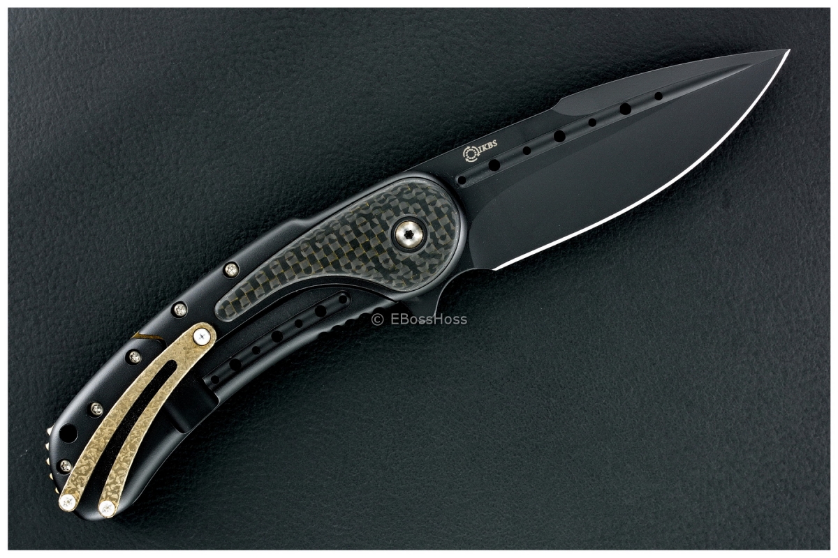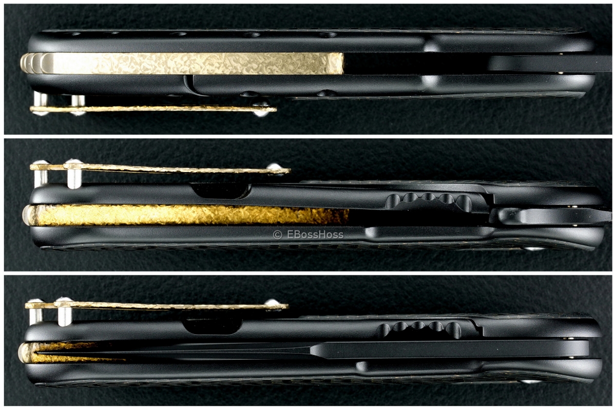 • Contoured Thick Blacked Titanium Handles w/Lightning Strike Carbon-Fiber Scales