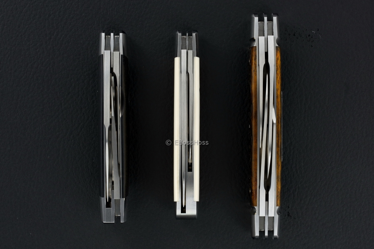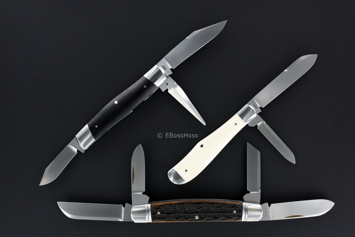 - SOLD - Tony Bose 3-Blade Cattle Knife Slipjoint; Ebony Handles, Slant Caps and Slant Bolsters, Diamond Cattle Escutcheon, Loud Walk and Talk, 154CM Steel, 3 11/16" Closed, New from the Bose Lottery at last weekend's 2015 Blade Show