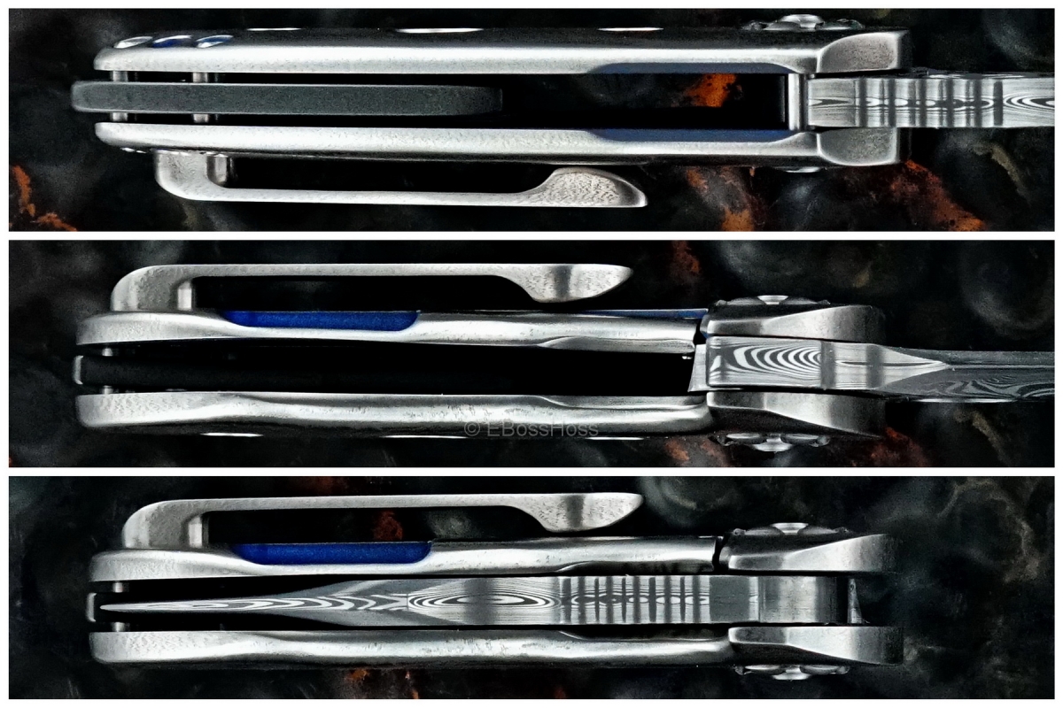 SOLD - Damasteel, Zirconium, Bearing Pivot, & "Pops" of Blue