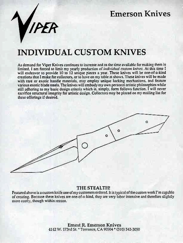 For more infor please click on this Emerson Stealth link to a discussion by USNer JBravo--considered by about everyone the best Emerson Knives historian after Ernie Emerson himself.