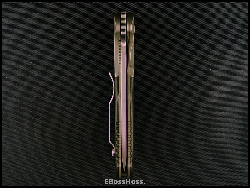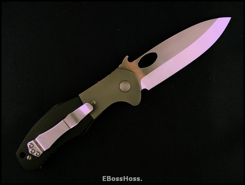 SOLD After a 6 year "designing" hiatus, Ernie came out with a new CQC, the 10. A radical departure featuring a double ground blade, a thumb hole opener, the distinctive palm swell handle, & indexing grooves. All design features for use in the 3 fighting grips (saber, reverse, & hammer.) It was of course an immediate hit & the 1st to have the Wave . This one's even a bit more rare being one of the early ones. It has many details that later versions do not, such as Indexing Notches & the Transitional Domed Pivot Nut.