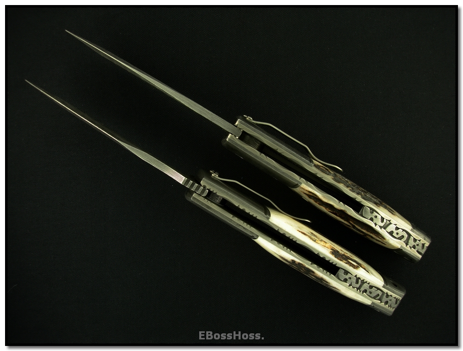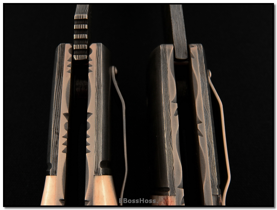 Deluxe XXL Deluge Flipper - 4.5 inch Recurve Blade (top) Deluxe XXL Torrent Flipper - 4.5 inch Clip-Point Blade (bottom)
