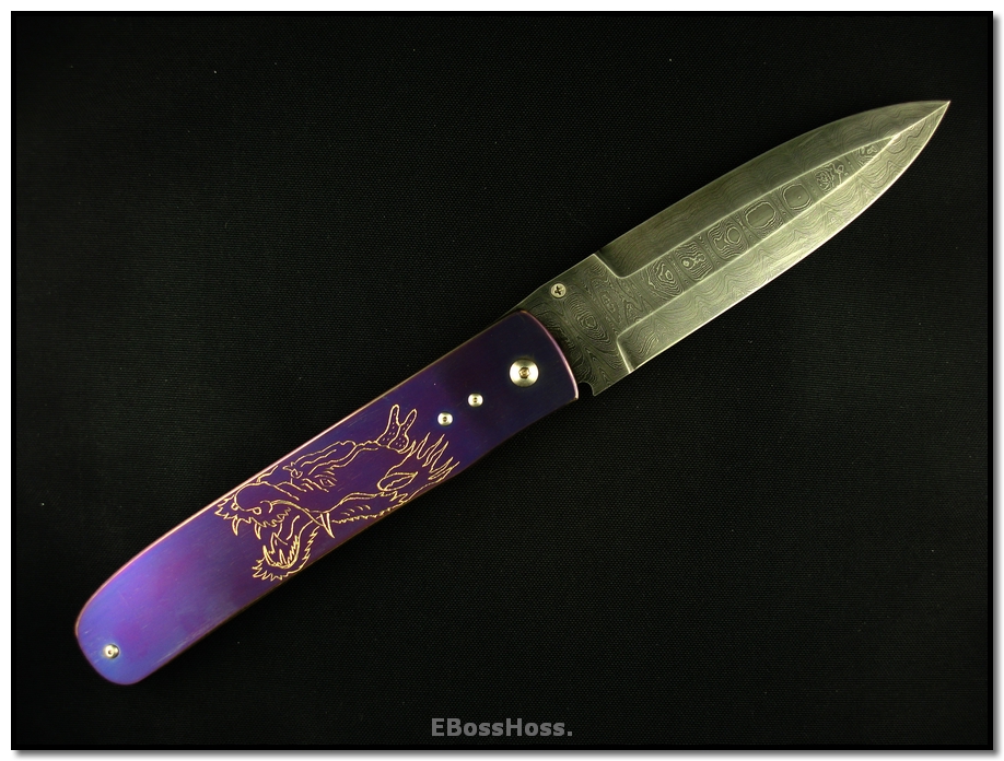 Wally Hayes Engraved Anodized Titanium Scales w/Dragon Heads engraved on both sides.