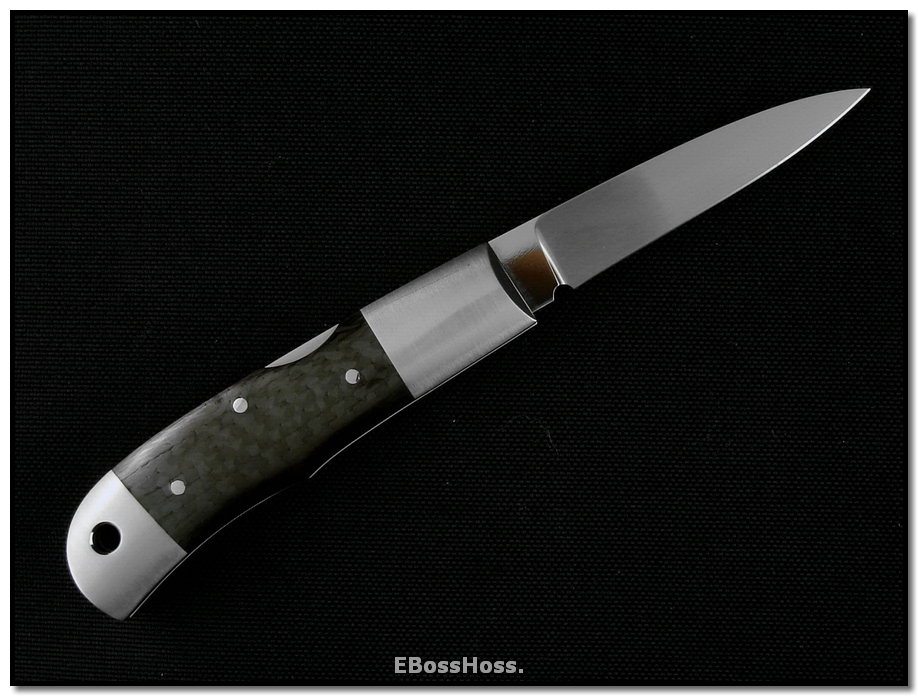 A beautiful knife that Ryuichi Kawamura made as his tribute to Jess Horn. It has a classic blade, stainless bolsters & liners, and Carbon Fiber scales.