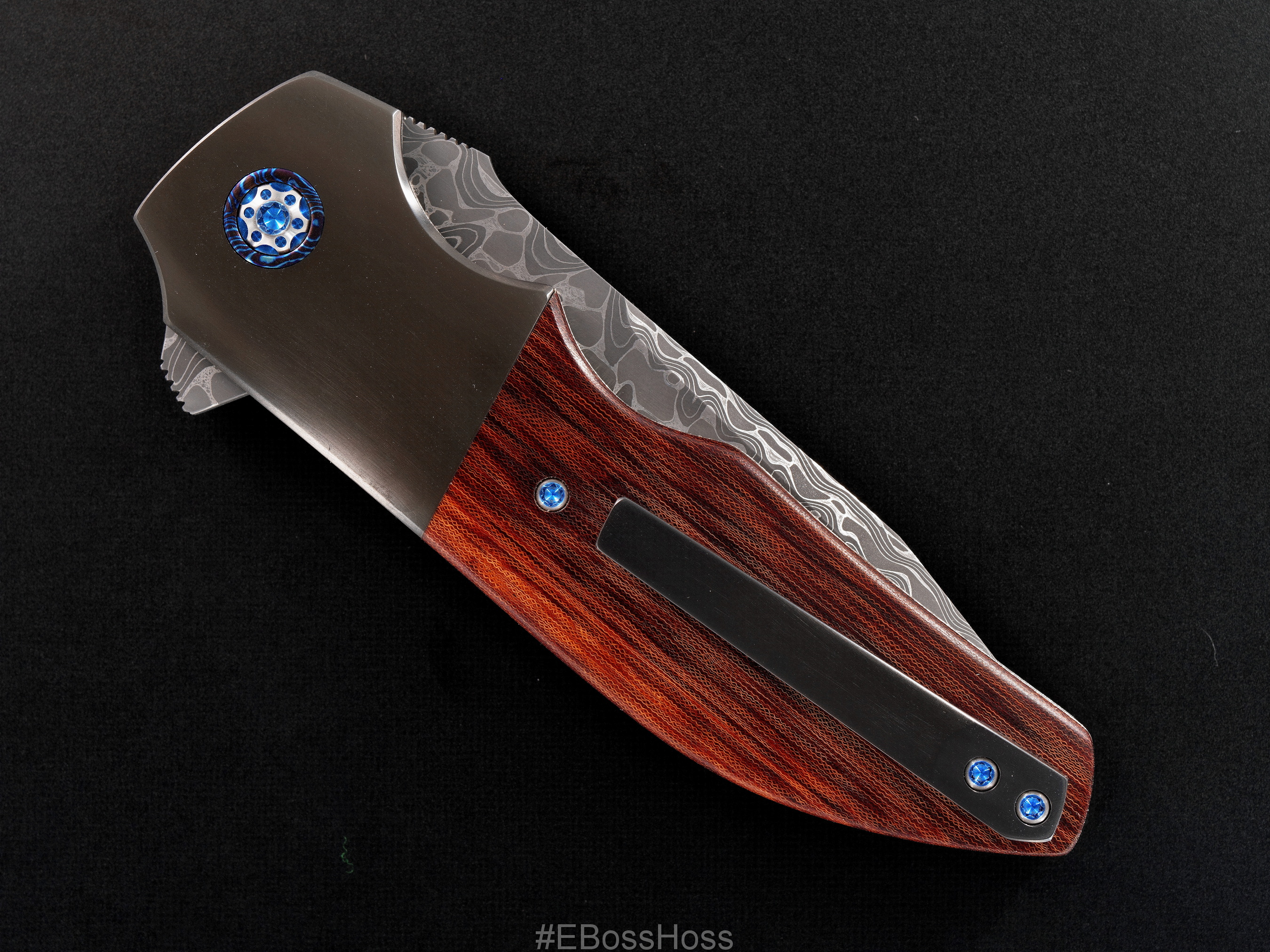 Cross-cut Vintage Westinghouse Linen Micarta - Nichols Intrepid Damascus - Zirconium - Mokuti