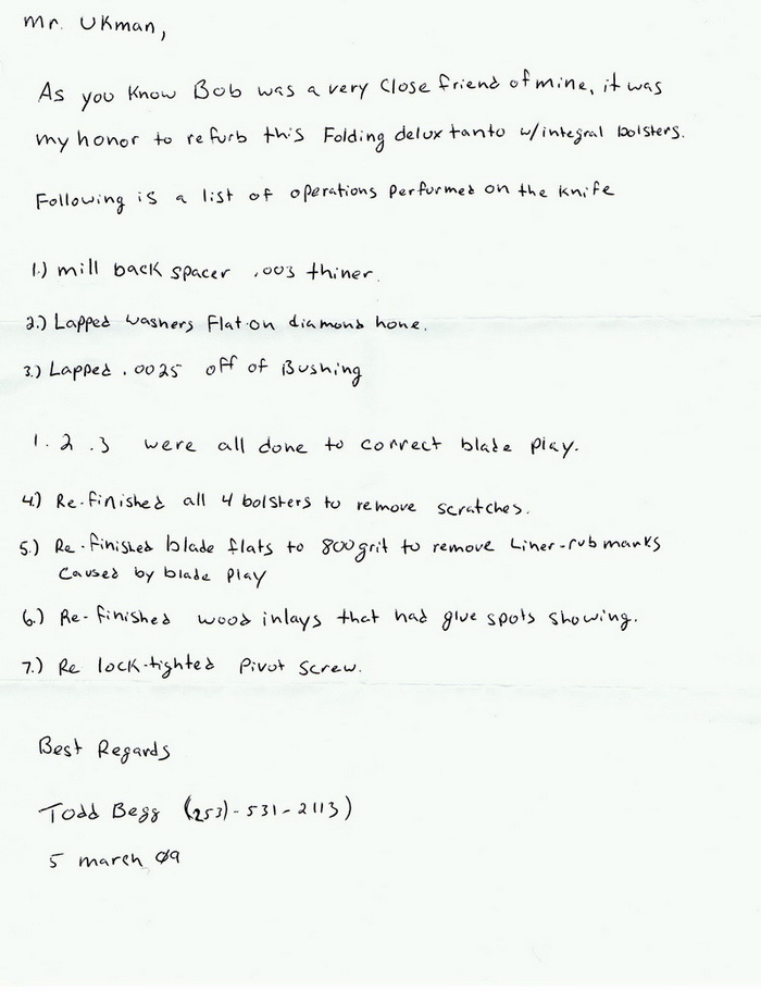 • Condition: Pre-owned in Like New Condition Fully refurb just completed by Todd Begg (see scanned letter)