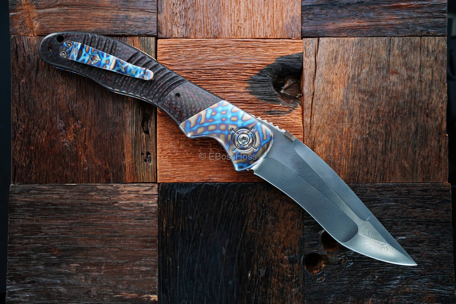 - Incredible Compound- Hollow-ground Hand-rubbed Recurved Devin Thomas Damascus (D2 & ATS-34) Blade with a Convex-ground Tip