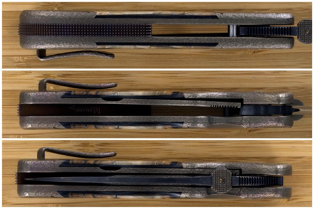 - Sal's Very Grippy Cross-Cut Titanium Backstrap Anodized to Highlight the rest of the knife