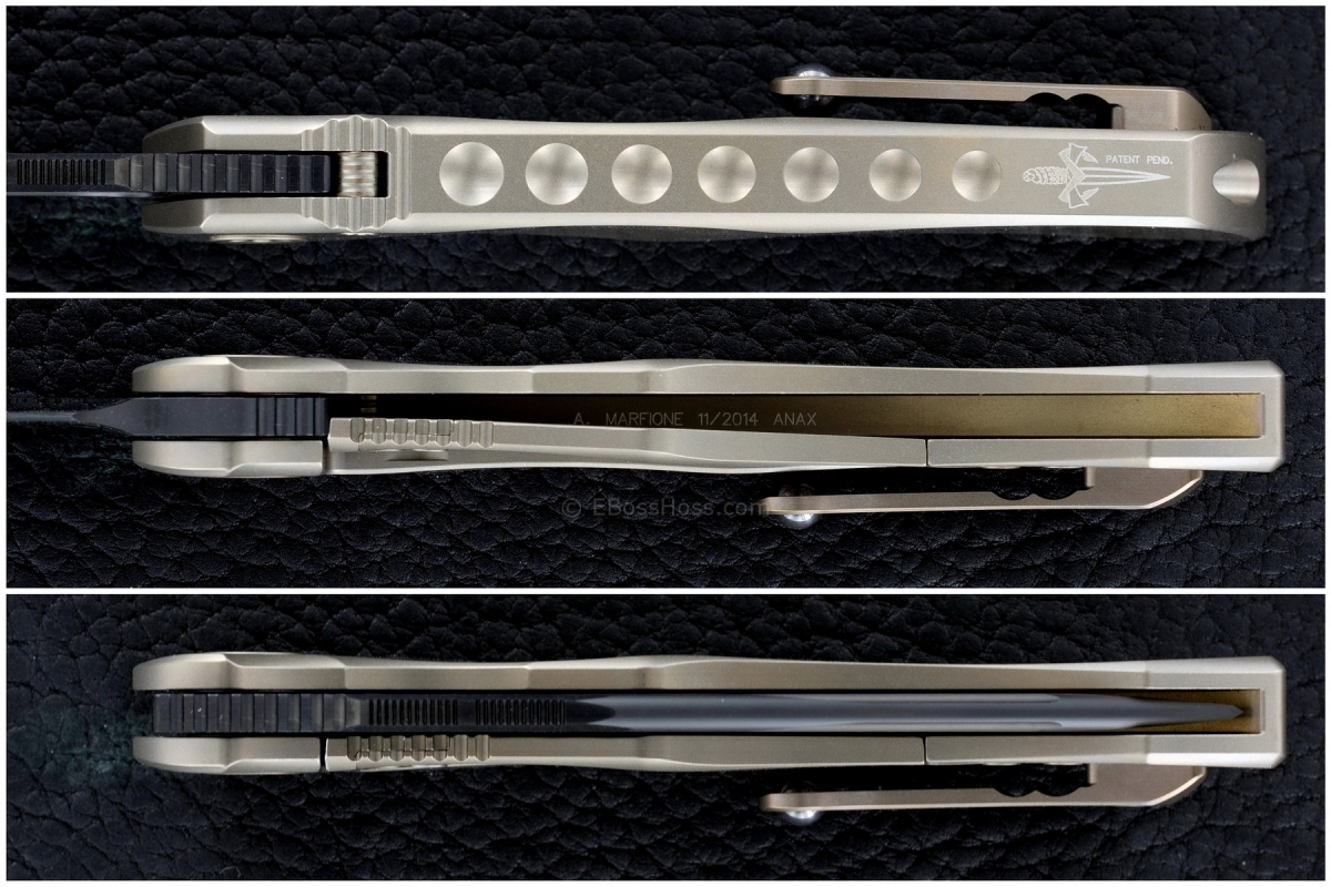 • The Packaging is also really outstanding...it includes a Titanium Marfione Logo Velco Crest, a Matching Marfione Logo Bead, A Certificate of Authenticity,  A Padded Zipper Knife Case, & a Customized Marfione Magnetic Closure Box to Hold It All.