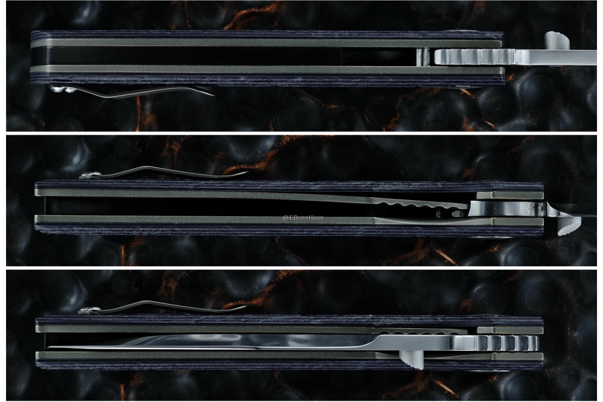 - Contoured and Sculpted Heavy Textured Black & Purp G10 Scales