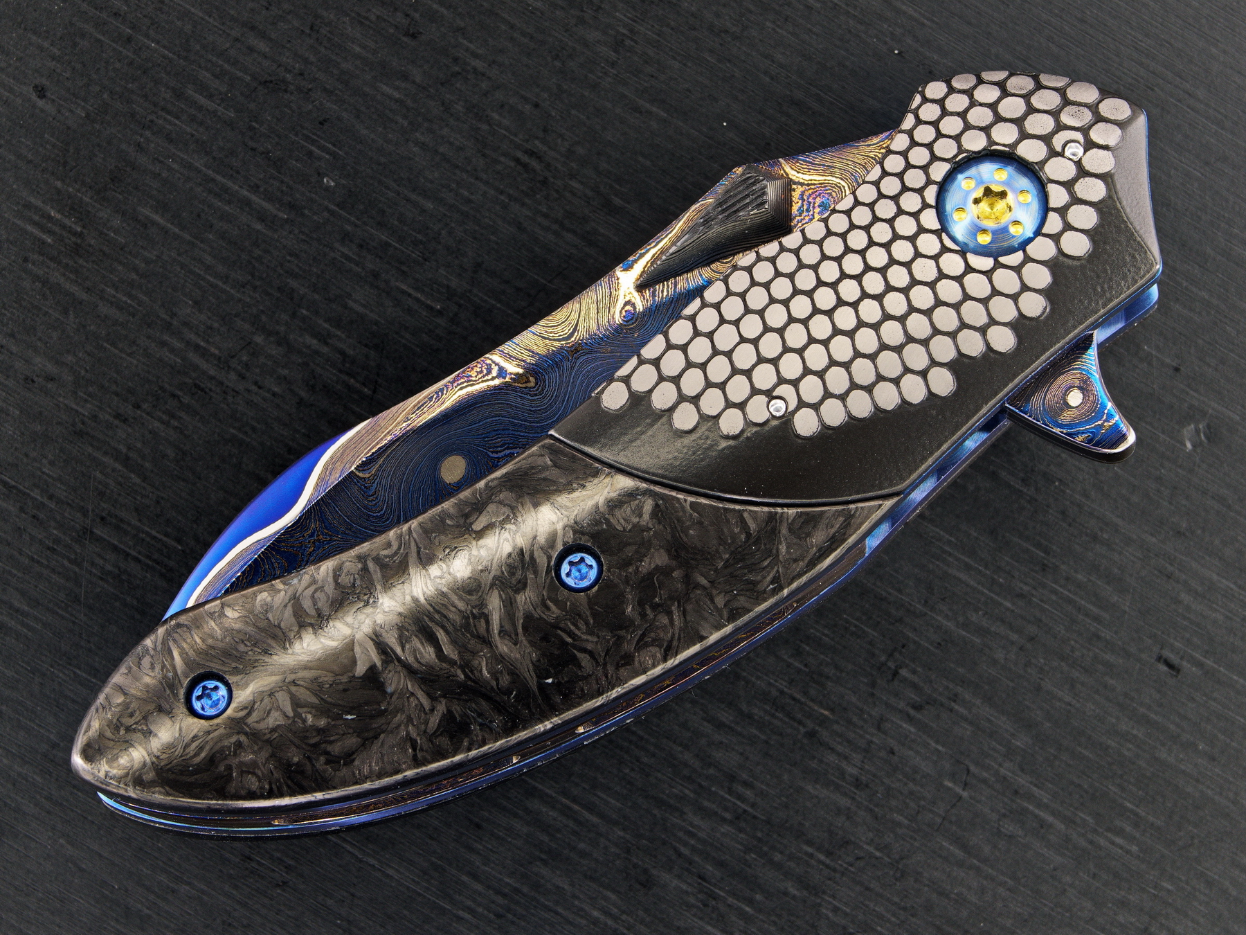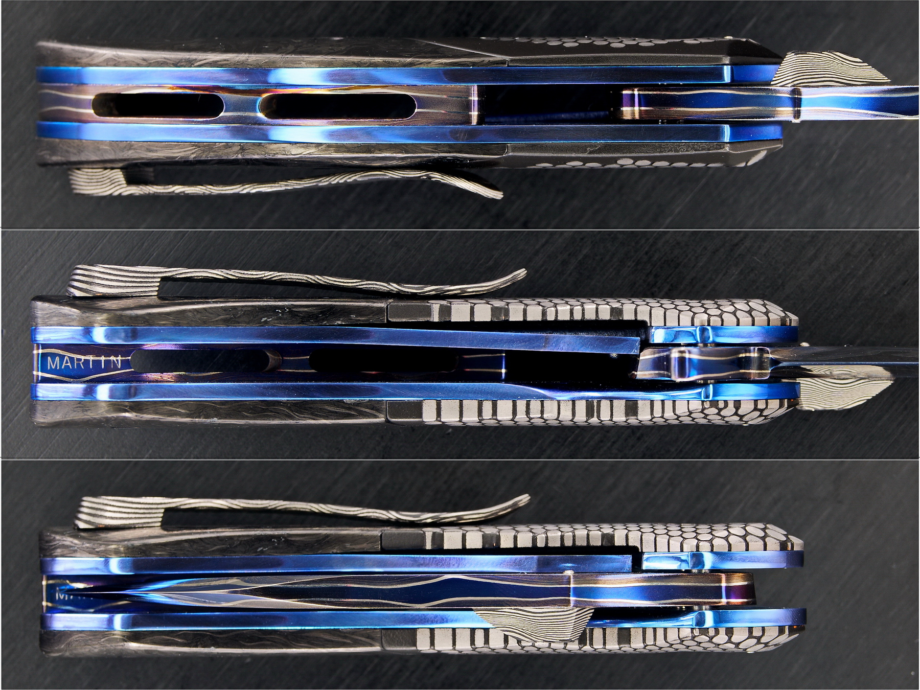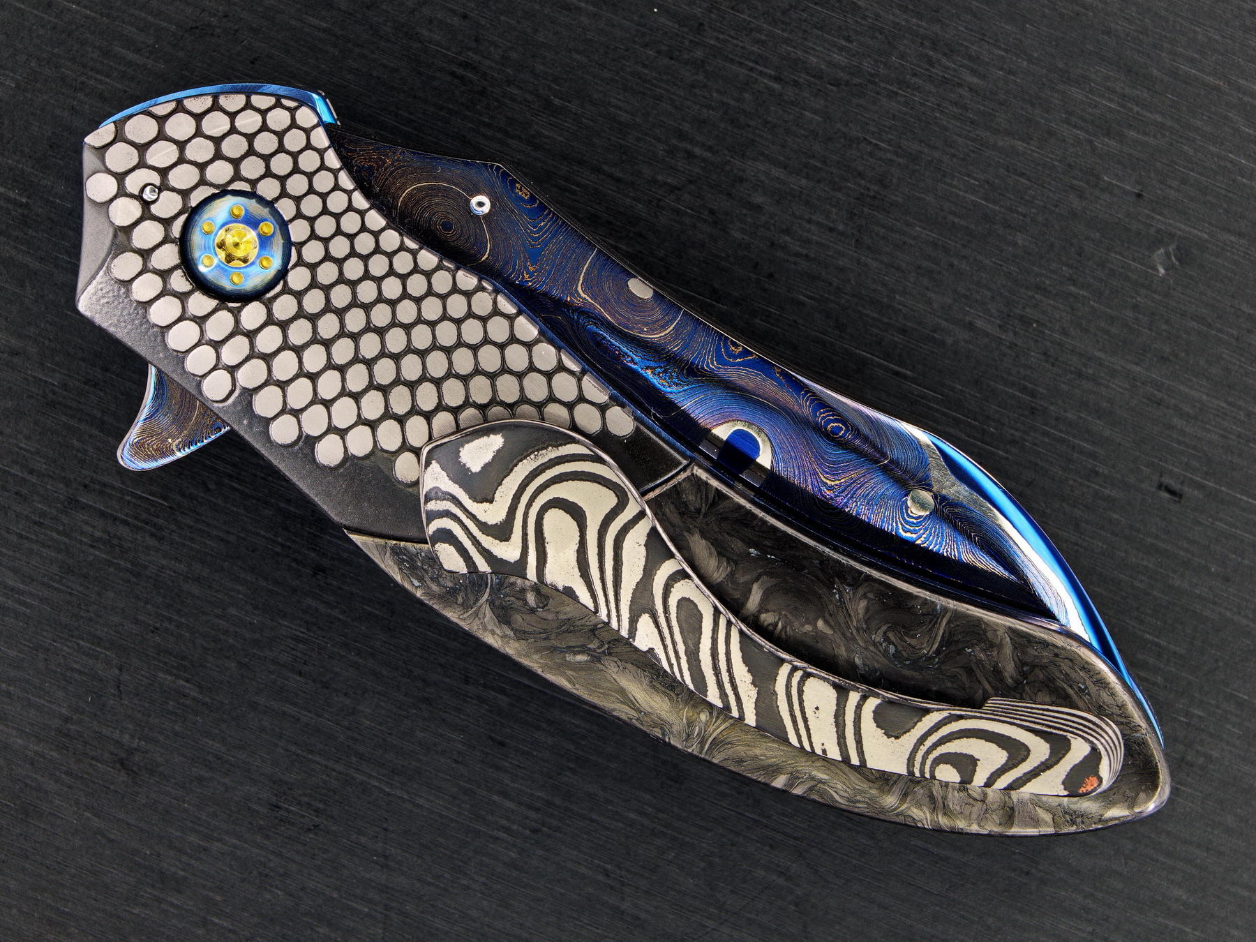 - Matching Hot-Blued Lava-Lamp Damascus Slotted Backbar cut on the Bias