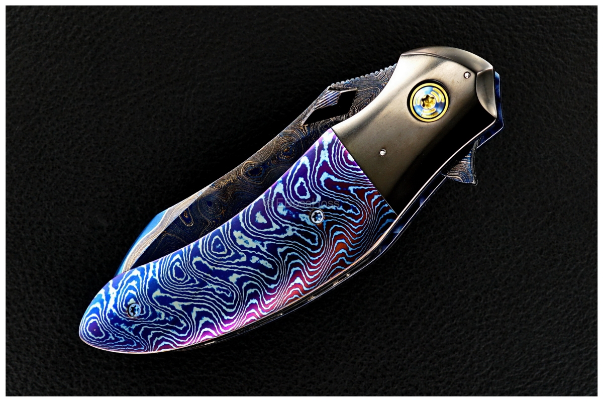 - Exceptional Sole-Authored San Mai, Hot-Blued, Lava-Lamp Damascus, "Thicker Enough" Blade
