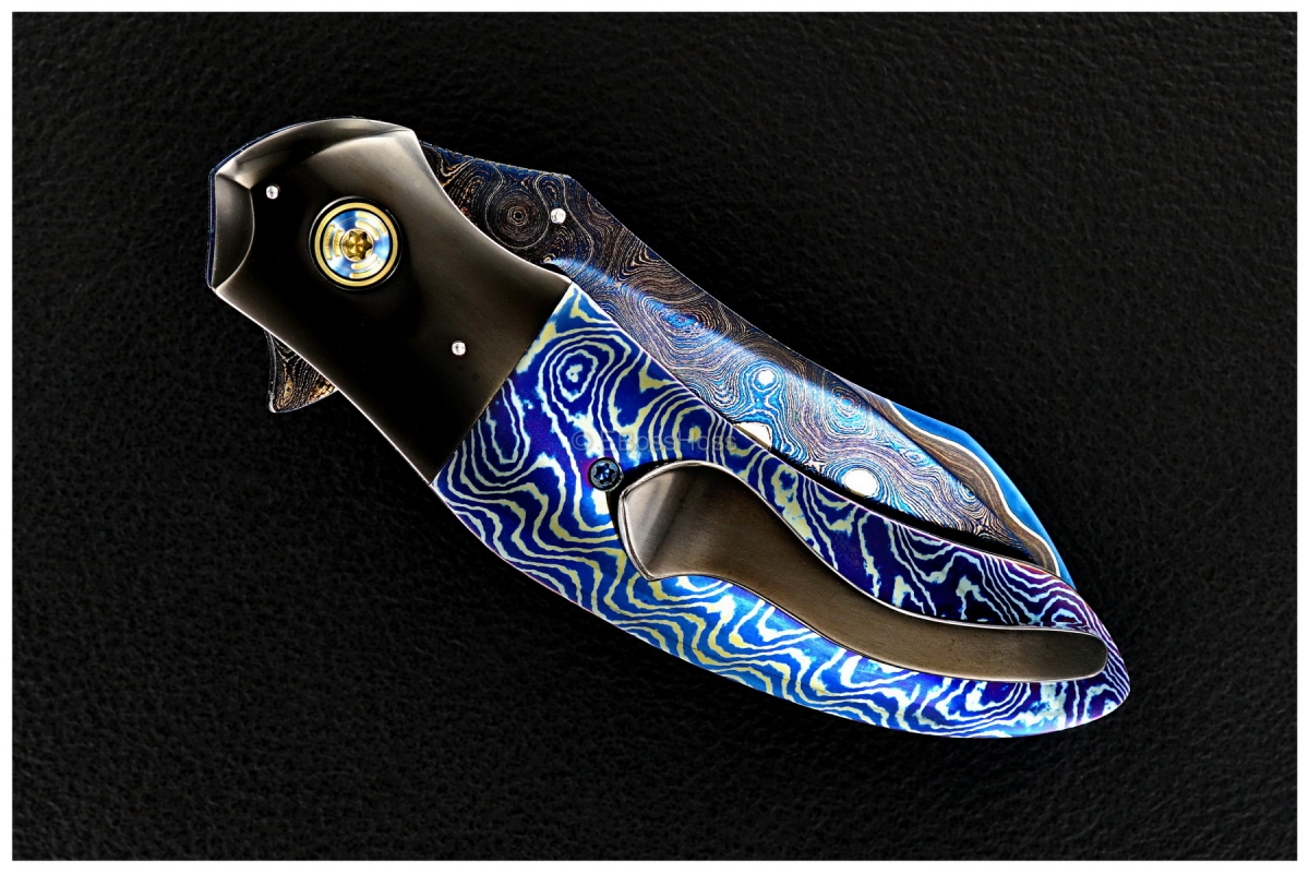 SOLD - San Mai Hot-Blued Lava-Lamp Damascus and Mokuti and Zirconium