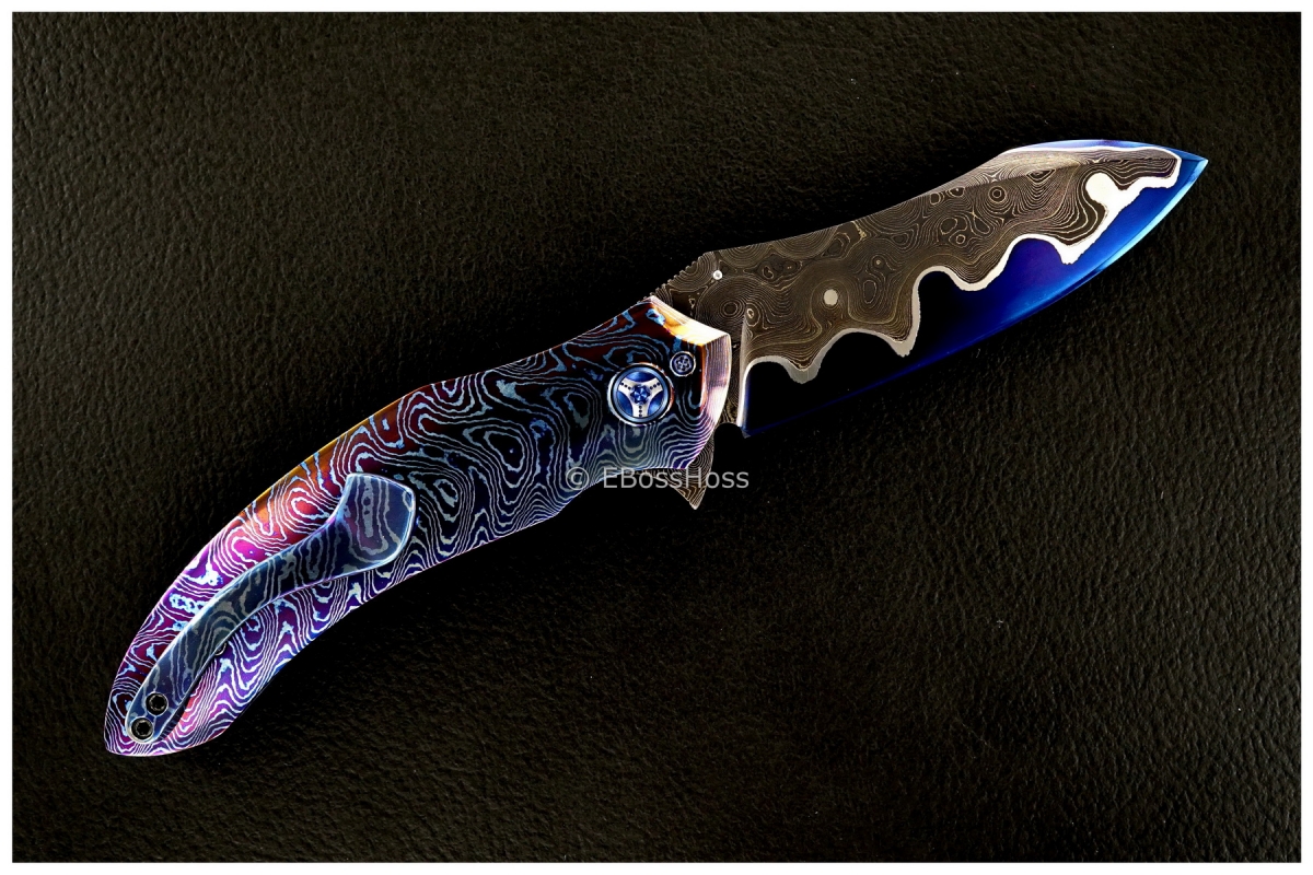 - Exceptional Sole-Authored Hot-Blue Fat San Mai (Lava-Lamp) Damascus Blade