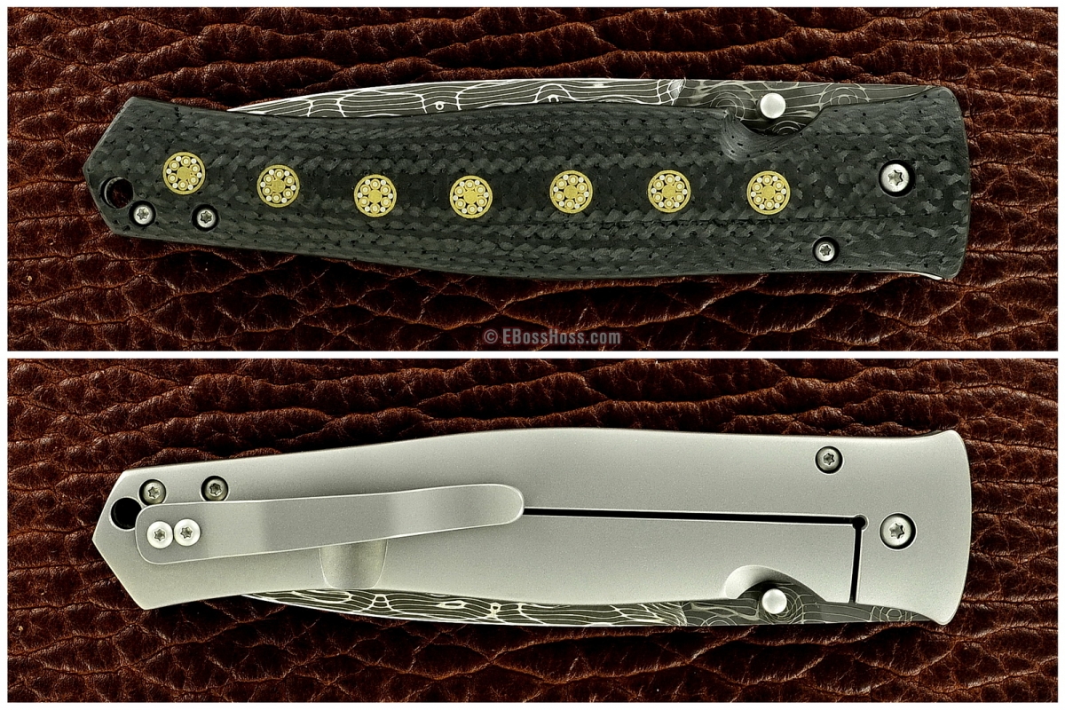 SOLD - Vines & Roses Damascus, Carbon-Fiber, & Mosaic Pins