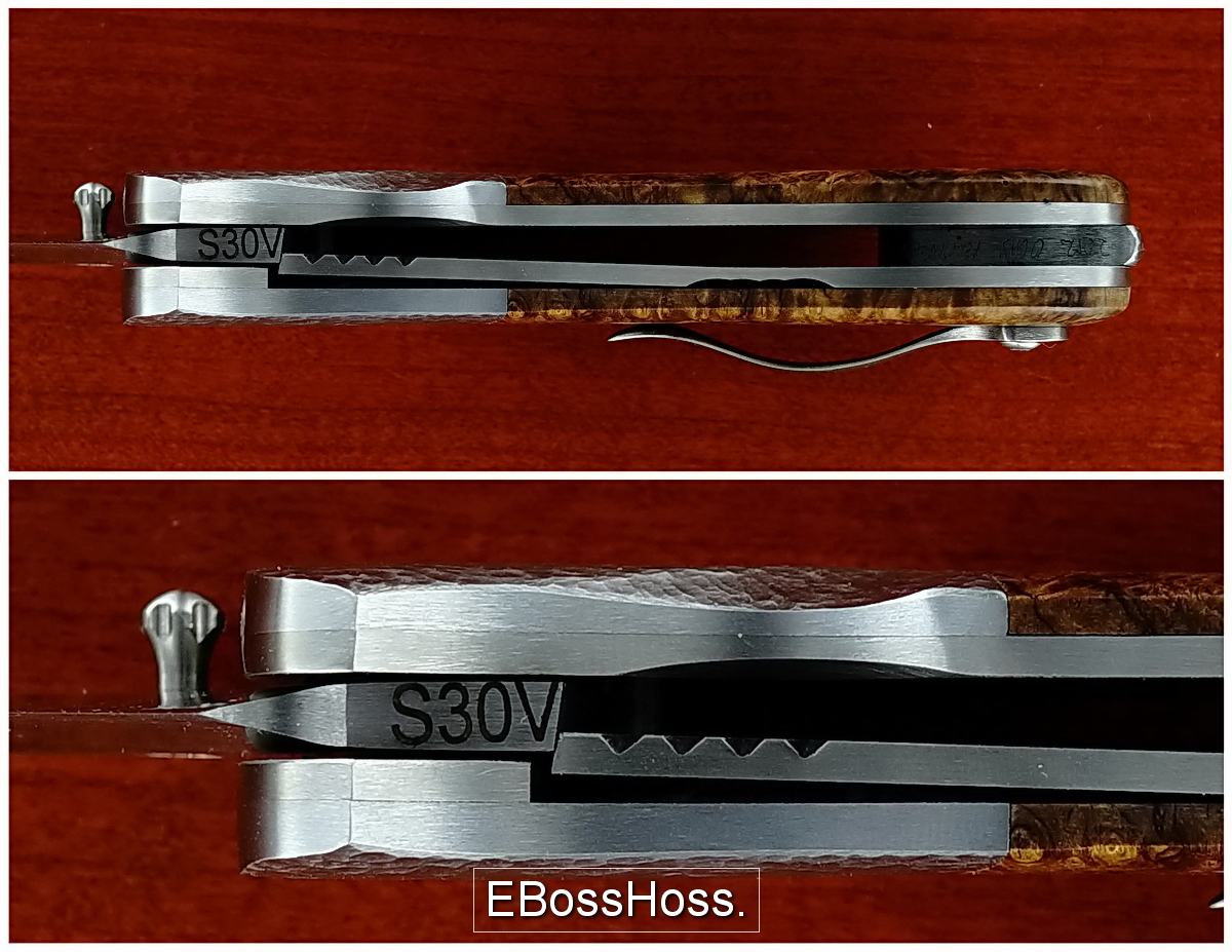 - Hand-rubbed Satin-finished S30V Blade