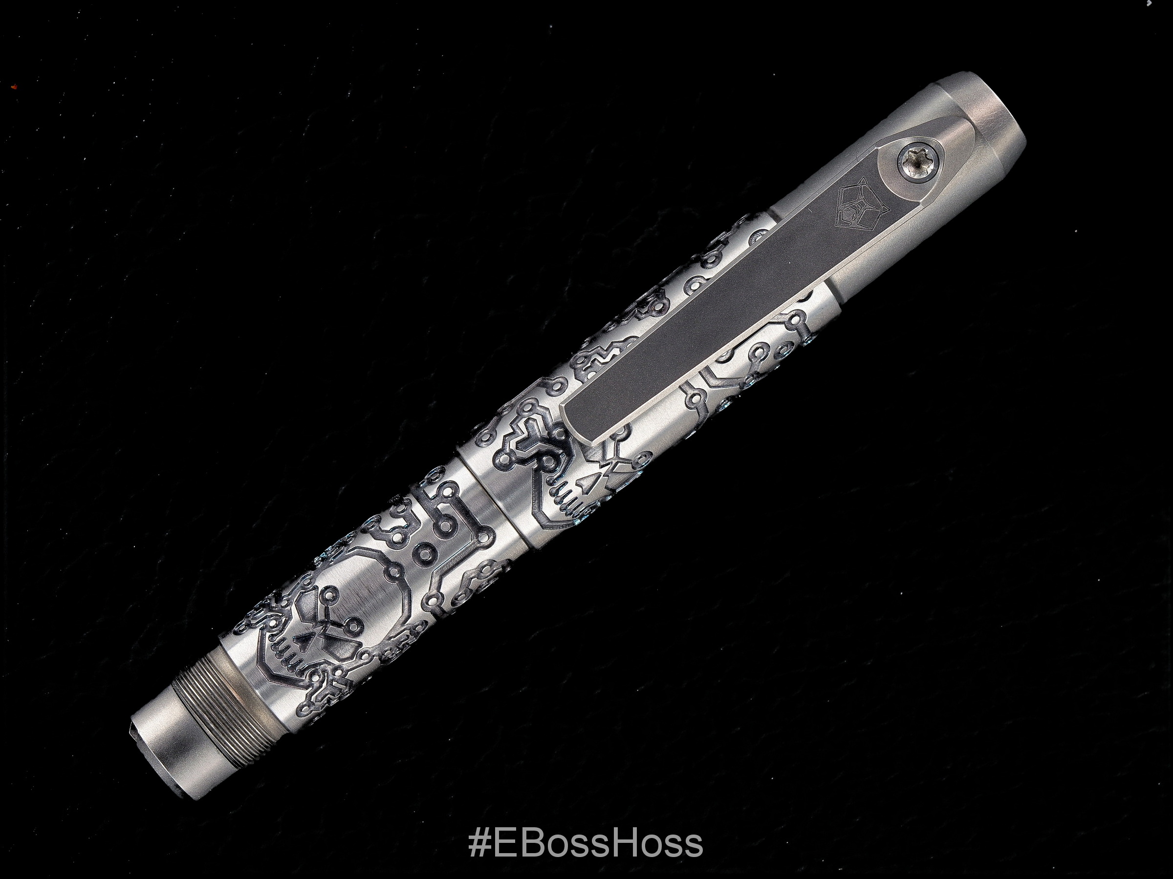 Material: Black Iridium Laser and coloring finish Titanium with smooth bottom deep engraving "Tech Pirate" pattern