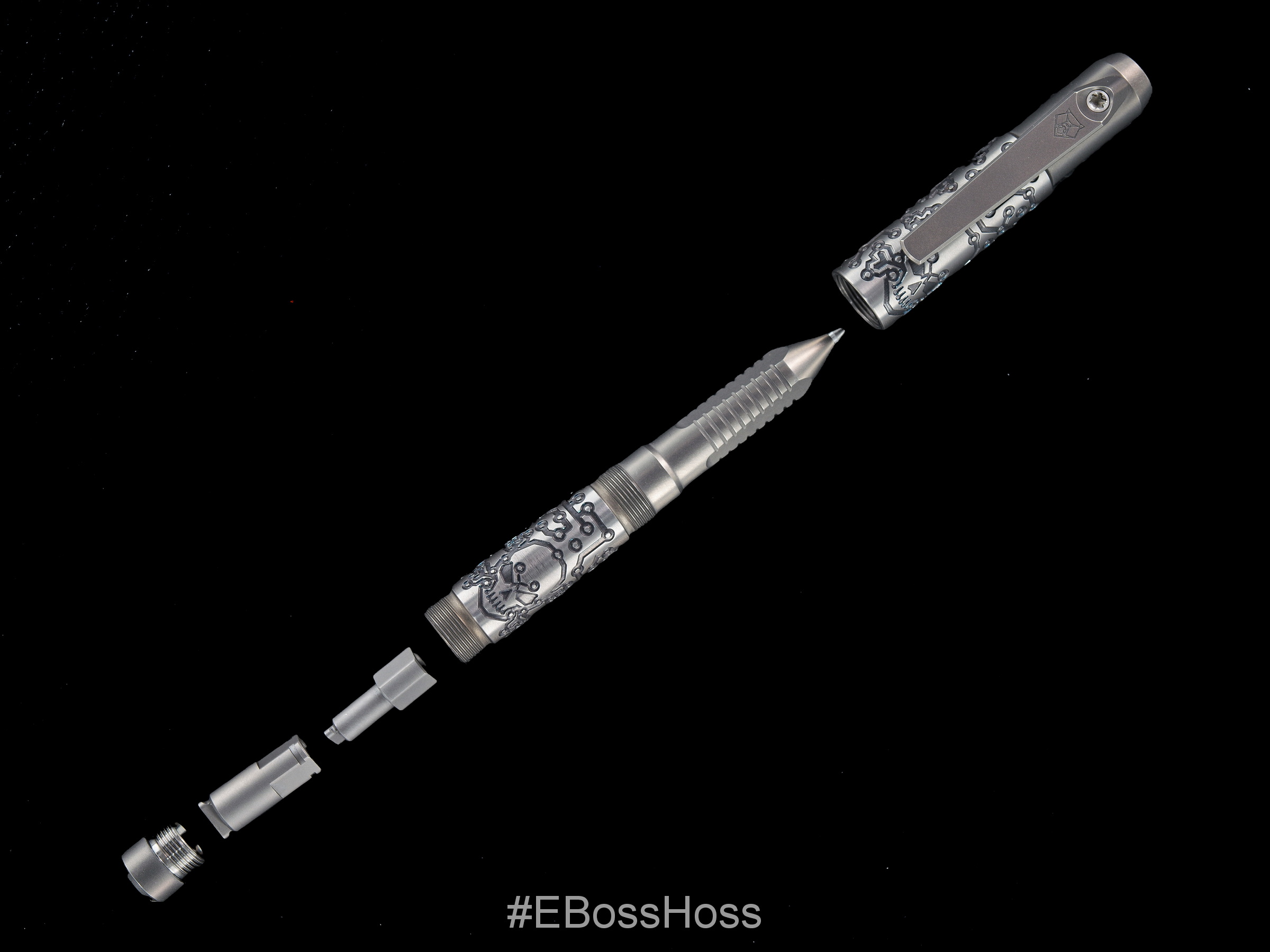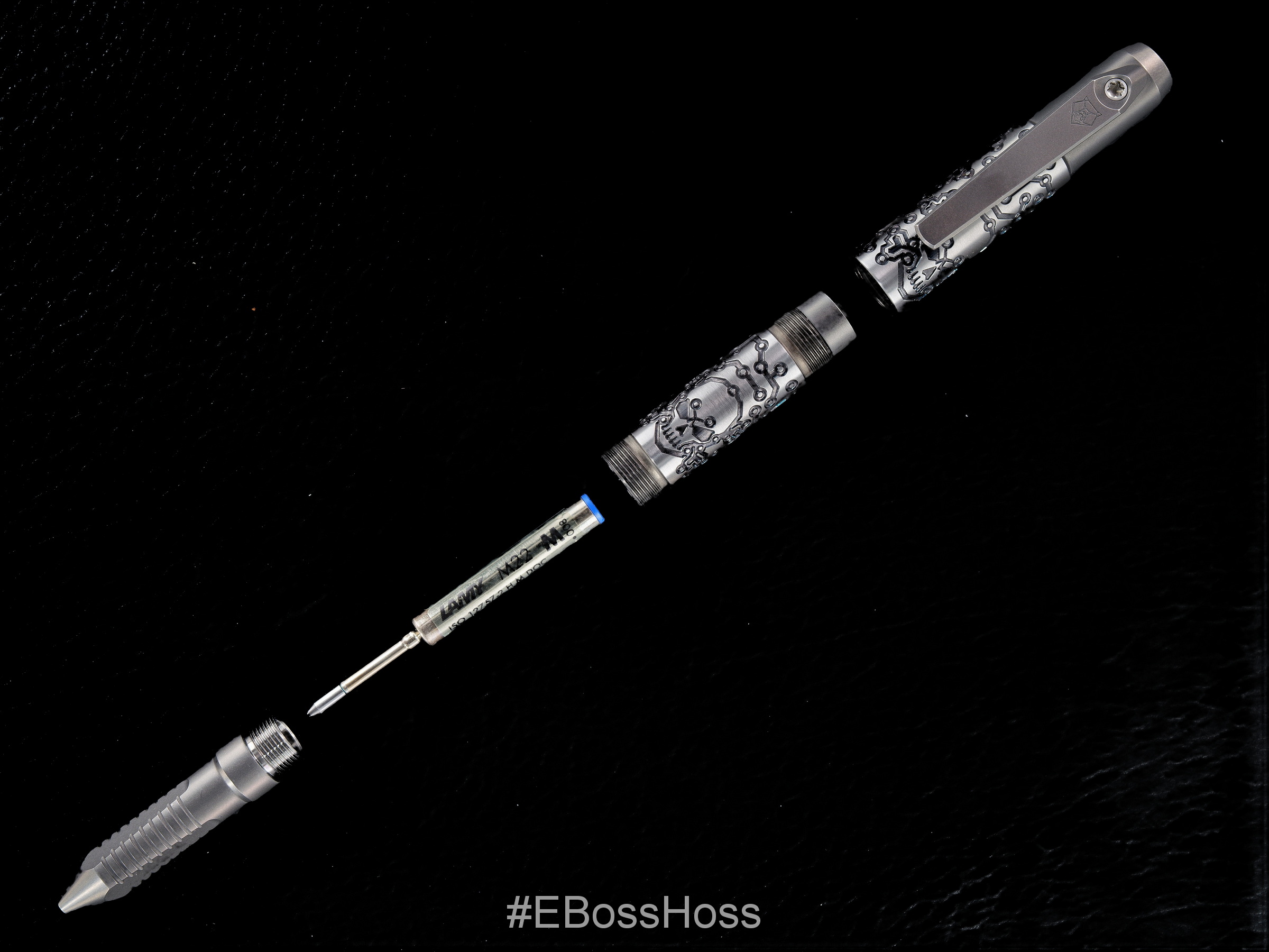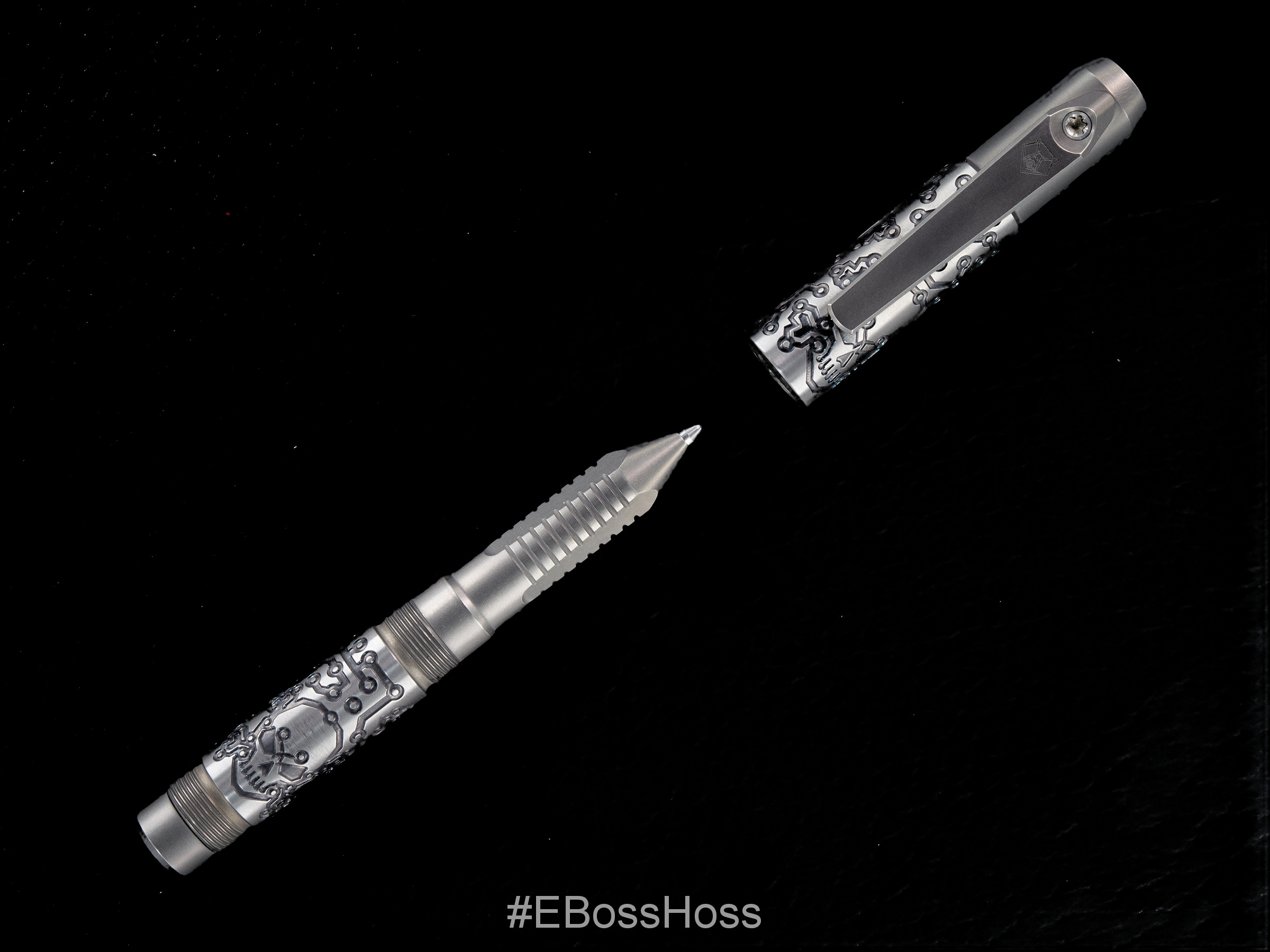 From Recon1: We’re proud to have the incredible machinist Mike Bond at Ti2Design @ti2design translate his iconic style from his creations to the Shirogorov Knives @shirogorov_knives pen tool. The artwork on this pen tool is not your typical laser engraving. These tool pens are created with a black Iridium Laser and coloring finish Titanium with a smooth bottom deep engraving in “Tech Pirate” pattern. Needless to say, the attention to detail on these tool pens is on another level!