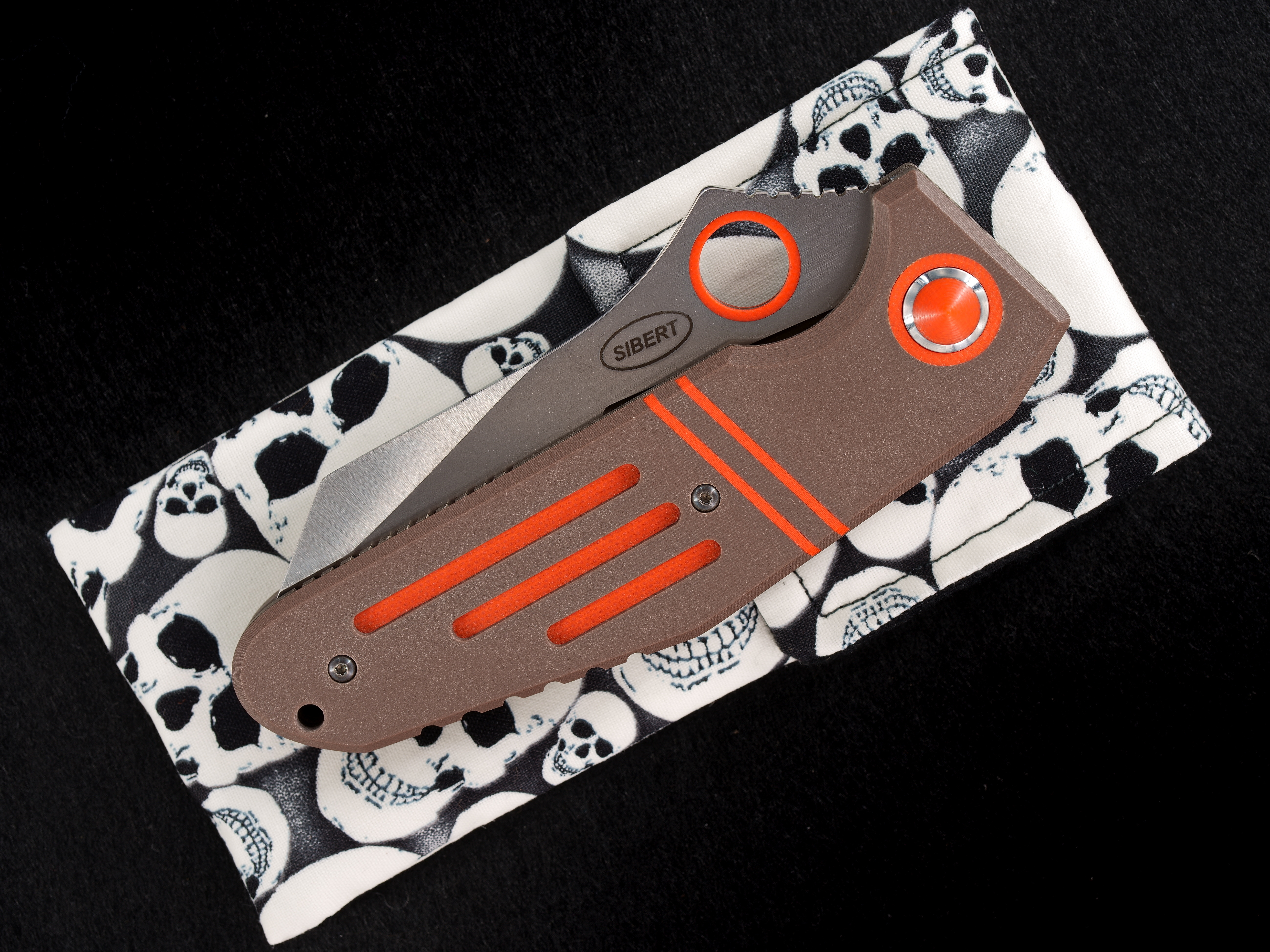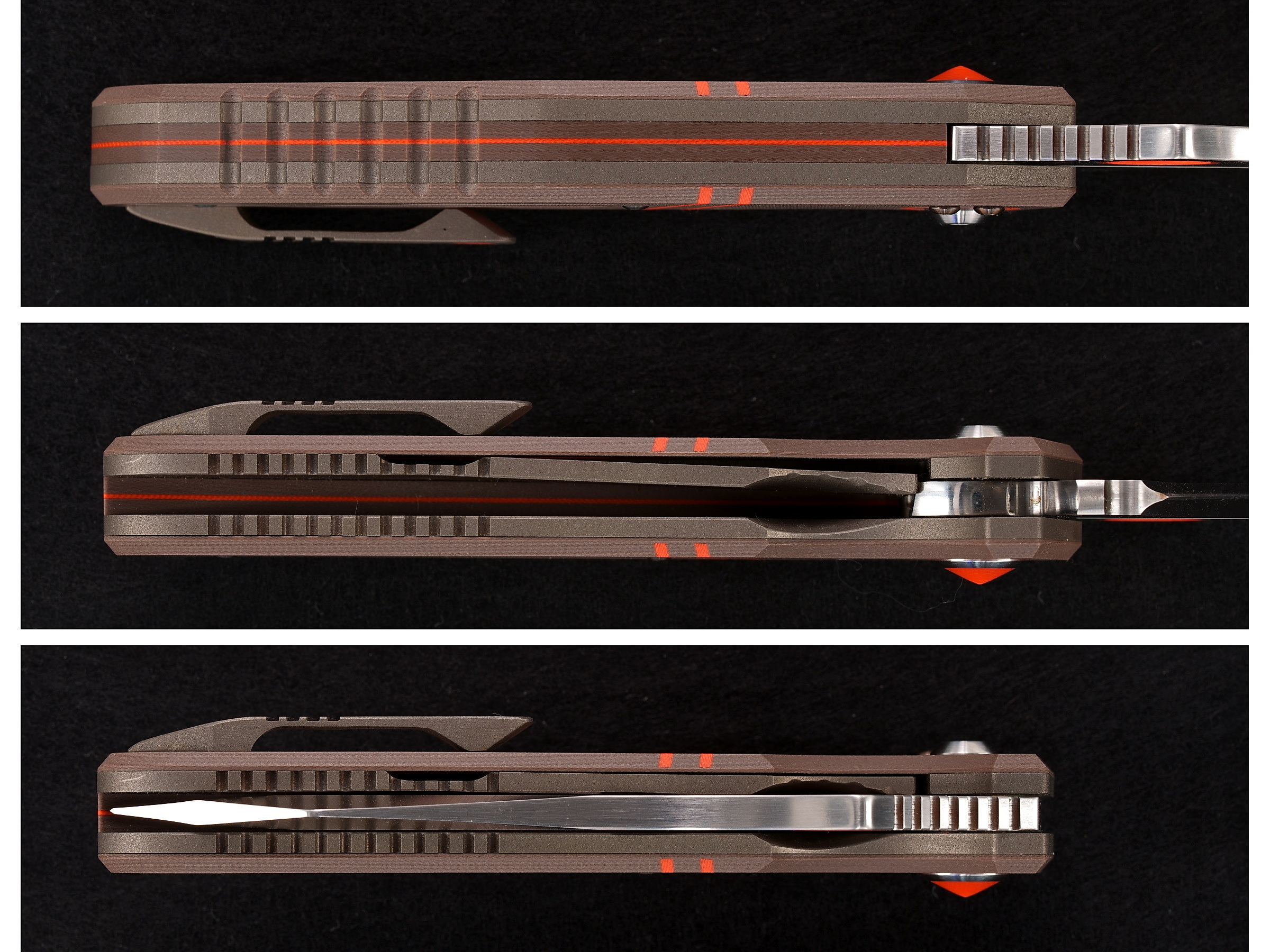- 3-D Milled Titanium Pocket Clip with Matching Orange Inlay. Knife Drilled for Tip-up or Tip-down Carry