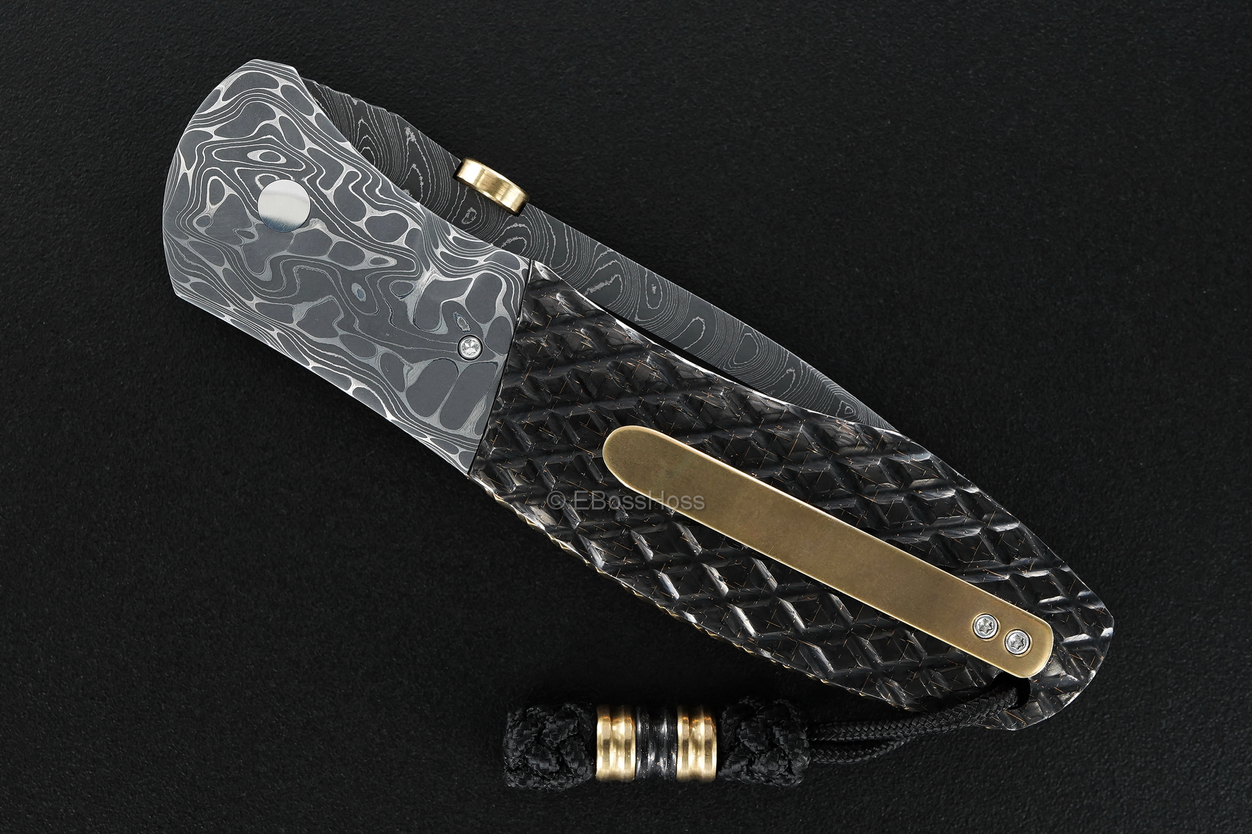 - Beautifully Contoured and Dovetailed Transitional Mosaic-Damascus Bolsters with Dual-Scallops to Facilitate both Righty or Lefty Blade Deploy