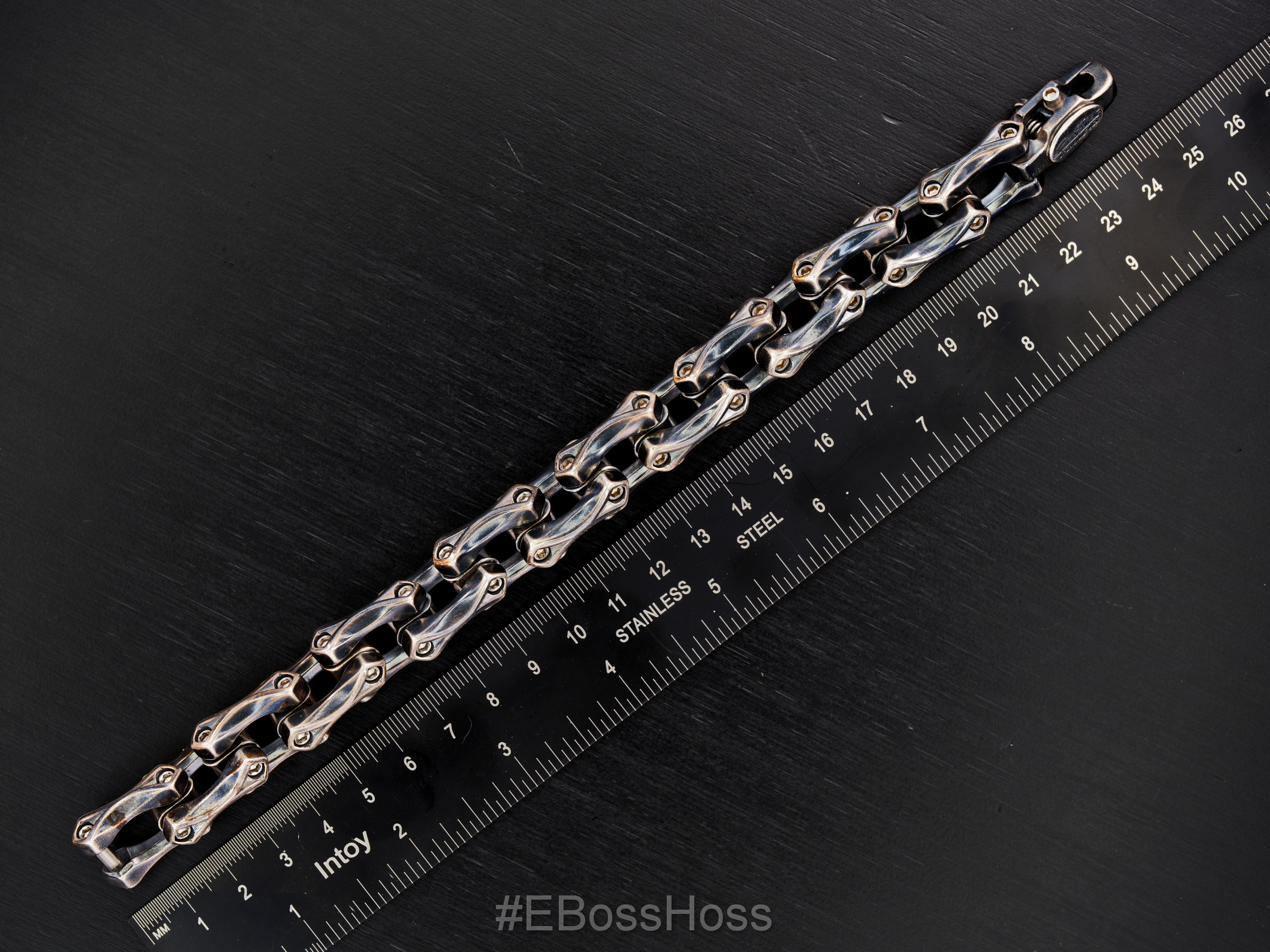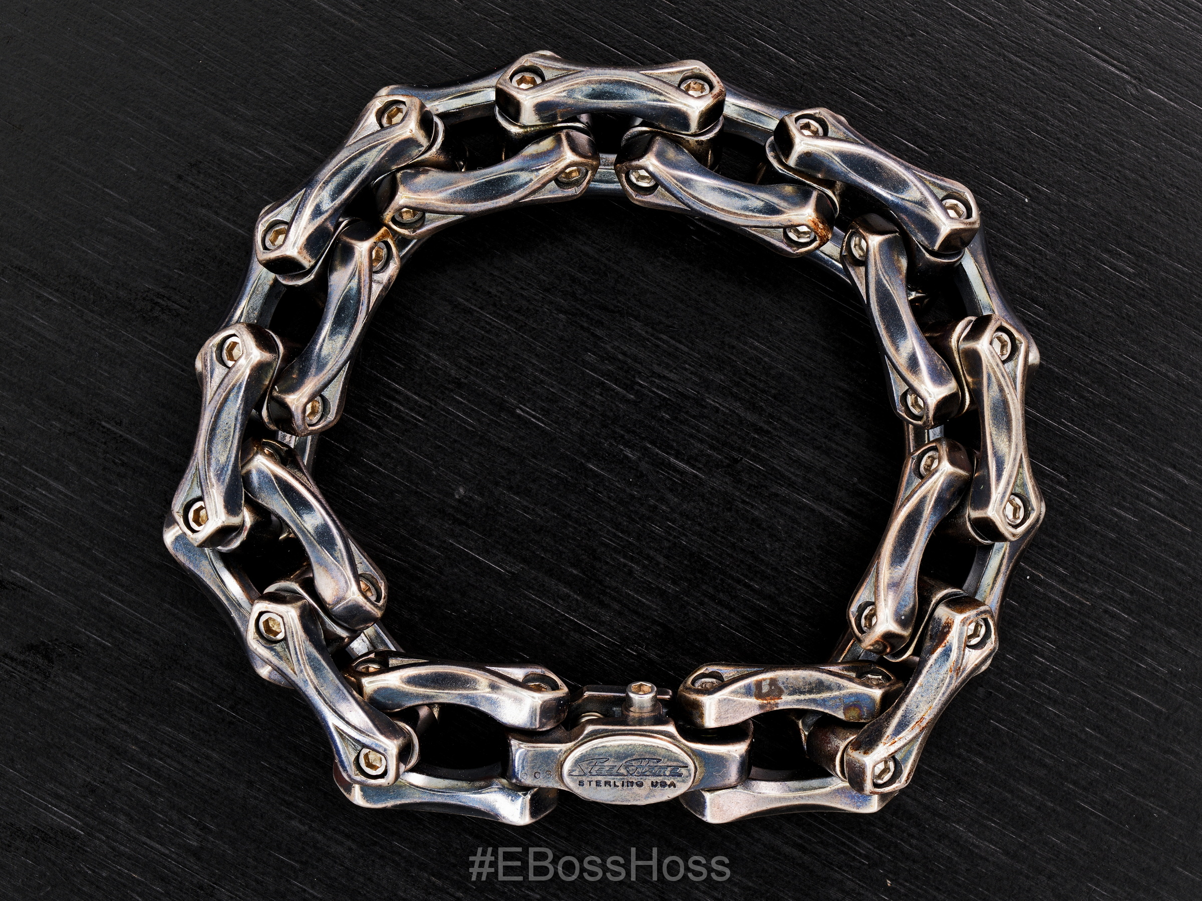 Each of the Contoured and Sculpted Sterling Silver Links is naturally Patinaed during the building process