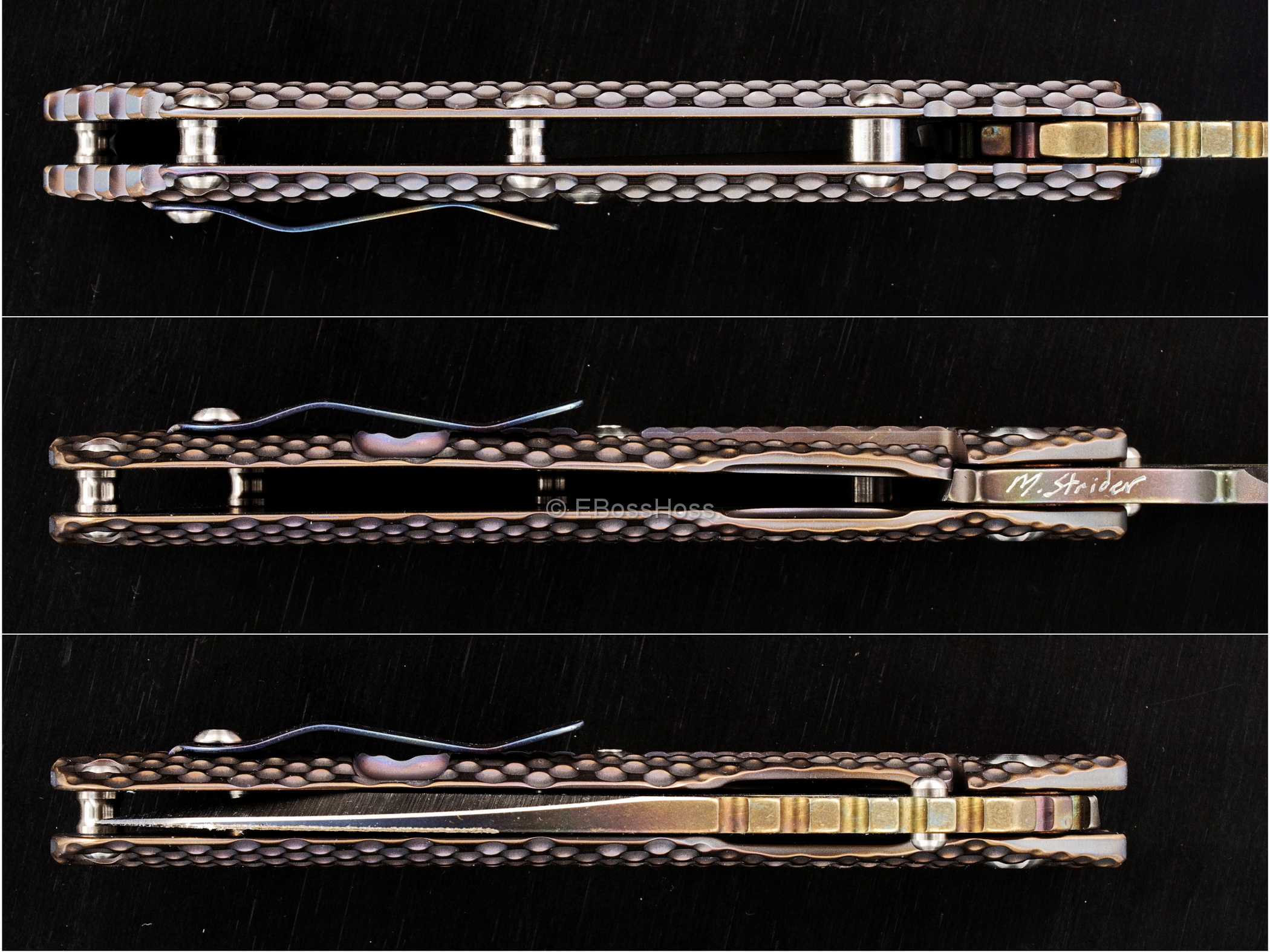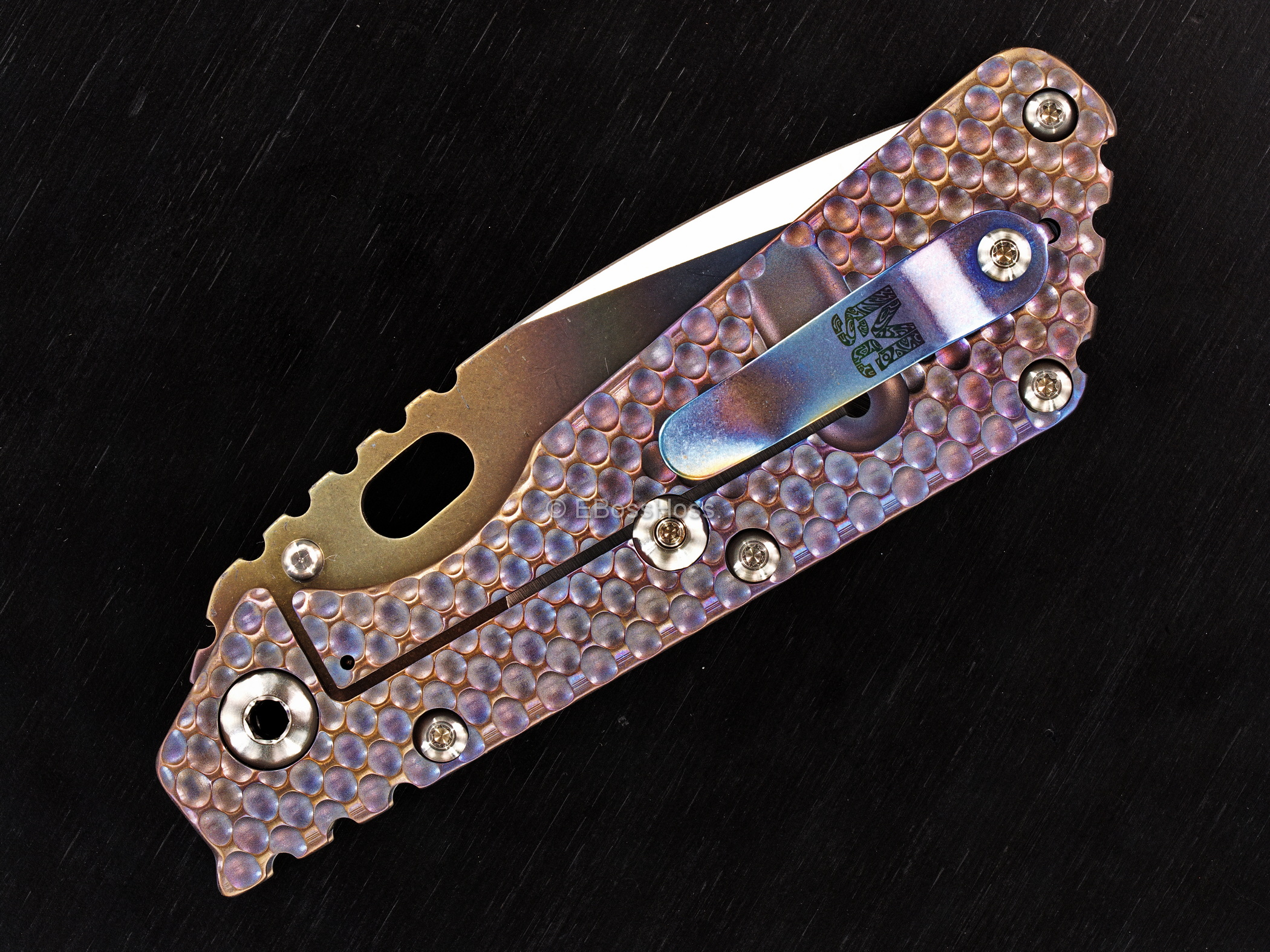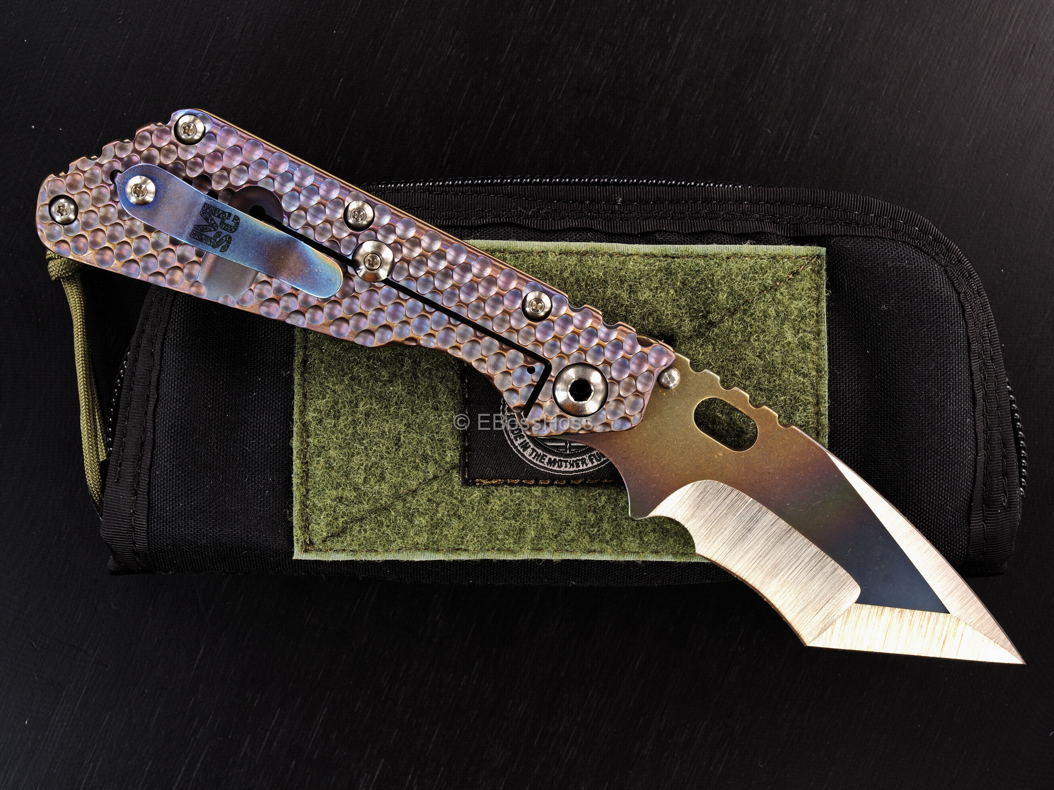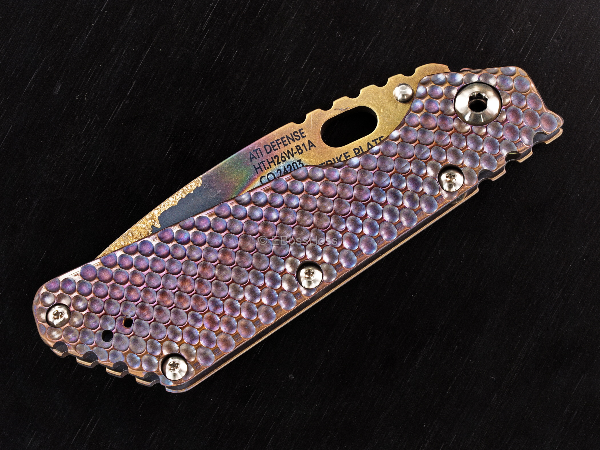 • Hand-ground Belly Nightmare Recurve Tanto Recurve Level IV Strike Plate Torch-colored Titanium Blade