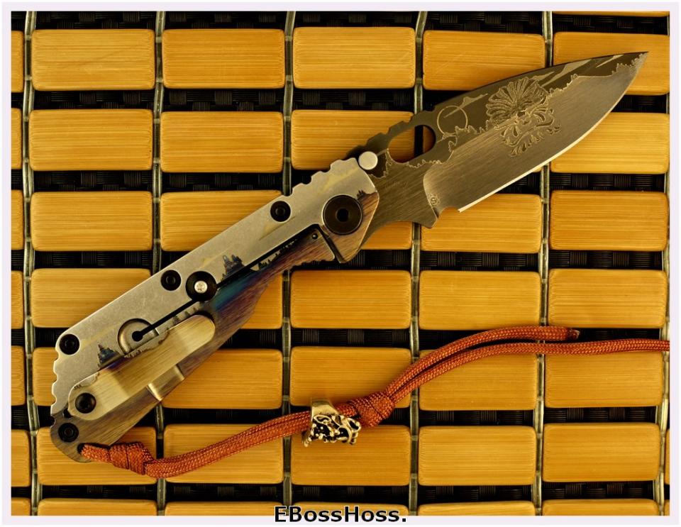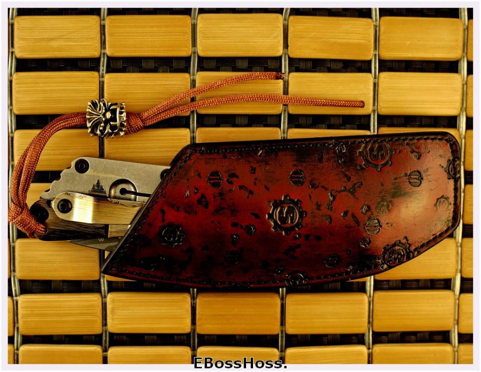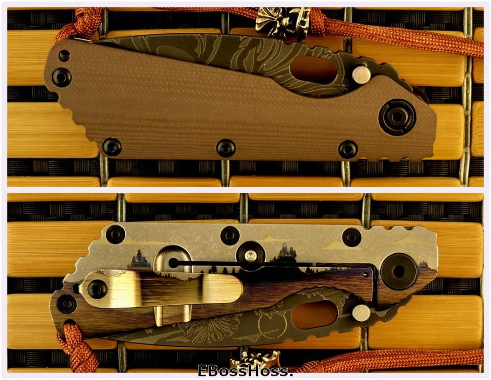 Starlingear Designed Laser-etched Blade, Lockbar Scale & Pocket Clip Brown G10 Scale Bronze "Wolfman" Bead Reddish-Leather by Starlingear's Greg Everett Specs: 3 7/8" Blade; 8 15/16" OAL Condition: Condition: New from Maker last weekend in NJ