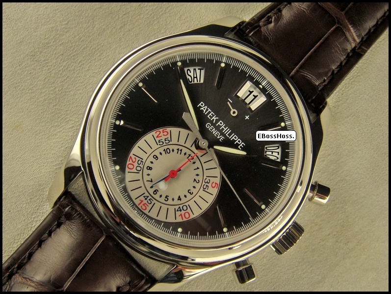 A totally new Patek Philippe (5960) chronograph: the long awaited first ever Patek Philippe self winding Annual Calendar Chronograph.